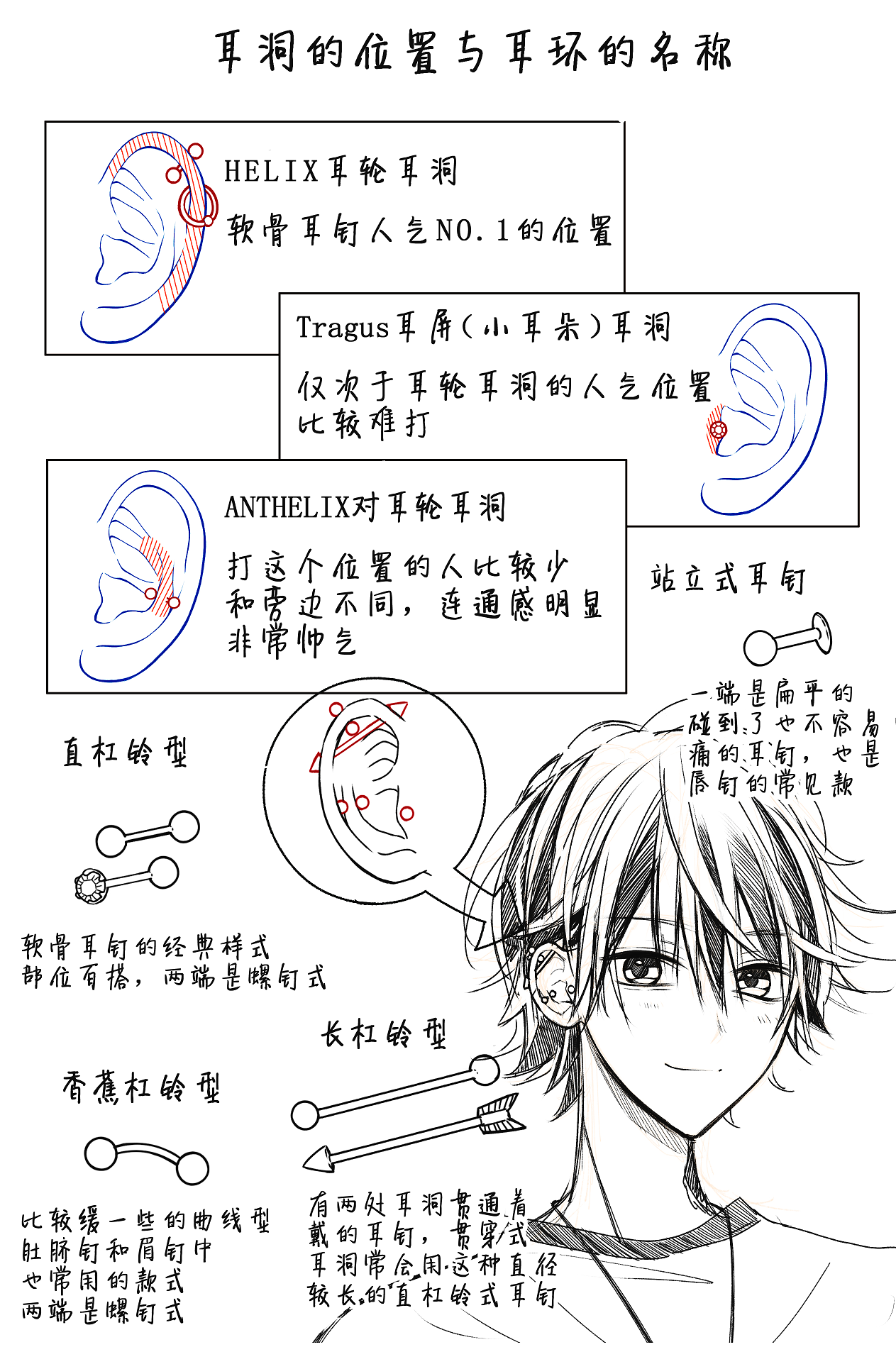 耳洞位置与耳环参考by 甘里シュガー 优动漫动漫创作支援平台